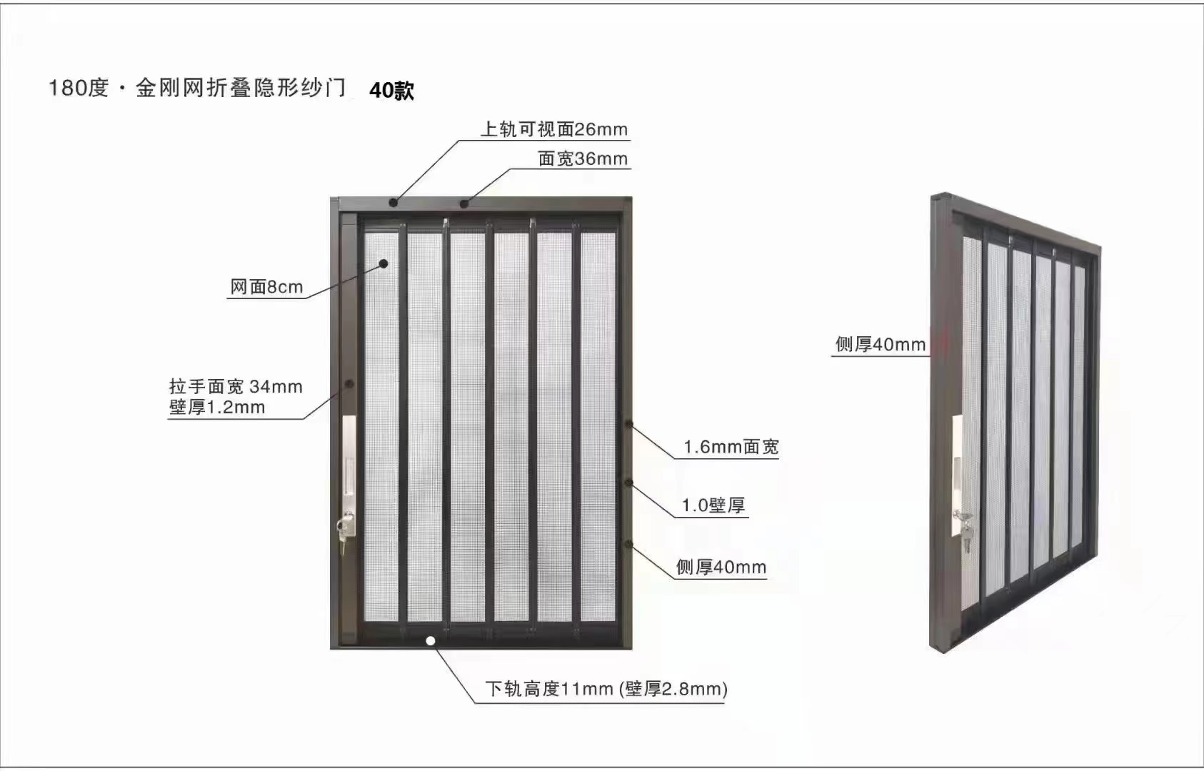 防蚊虫金隐门,铝合金无缝折叠门